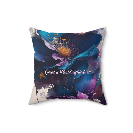 Spun Polyester Square Pillow - Great Is His Faithfulness