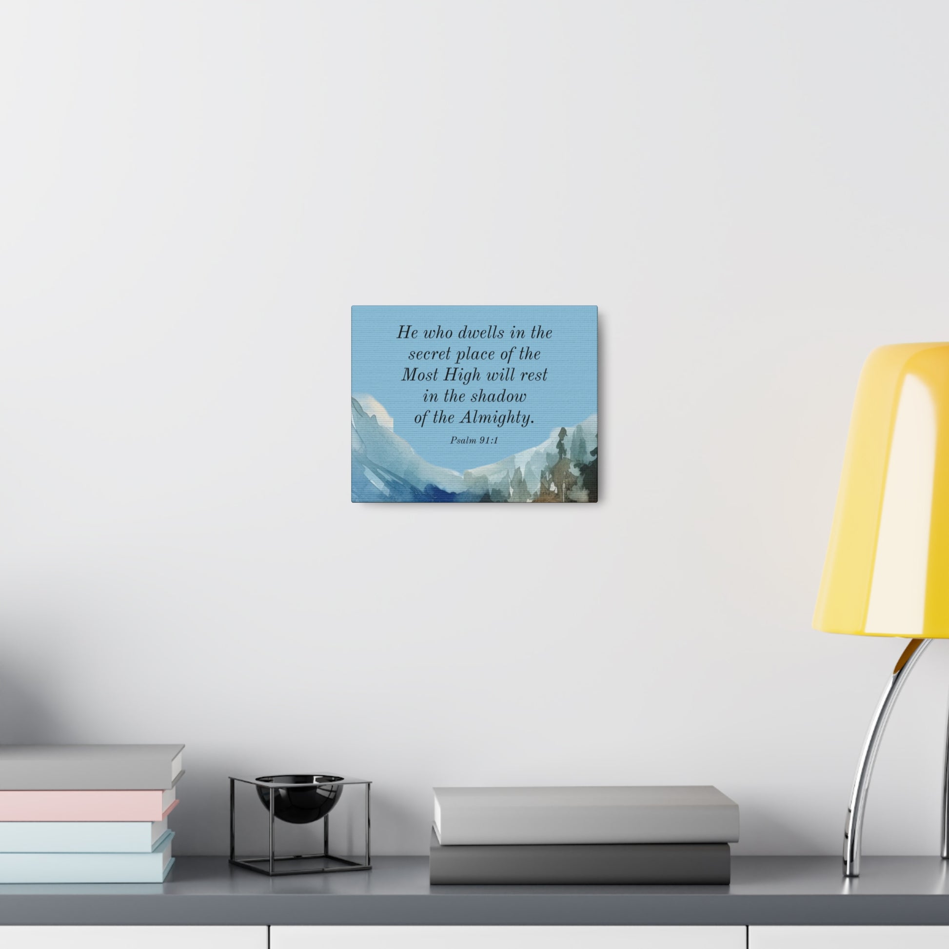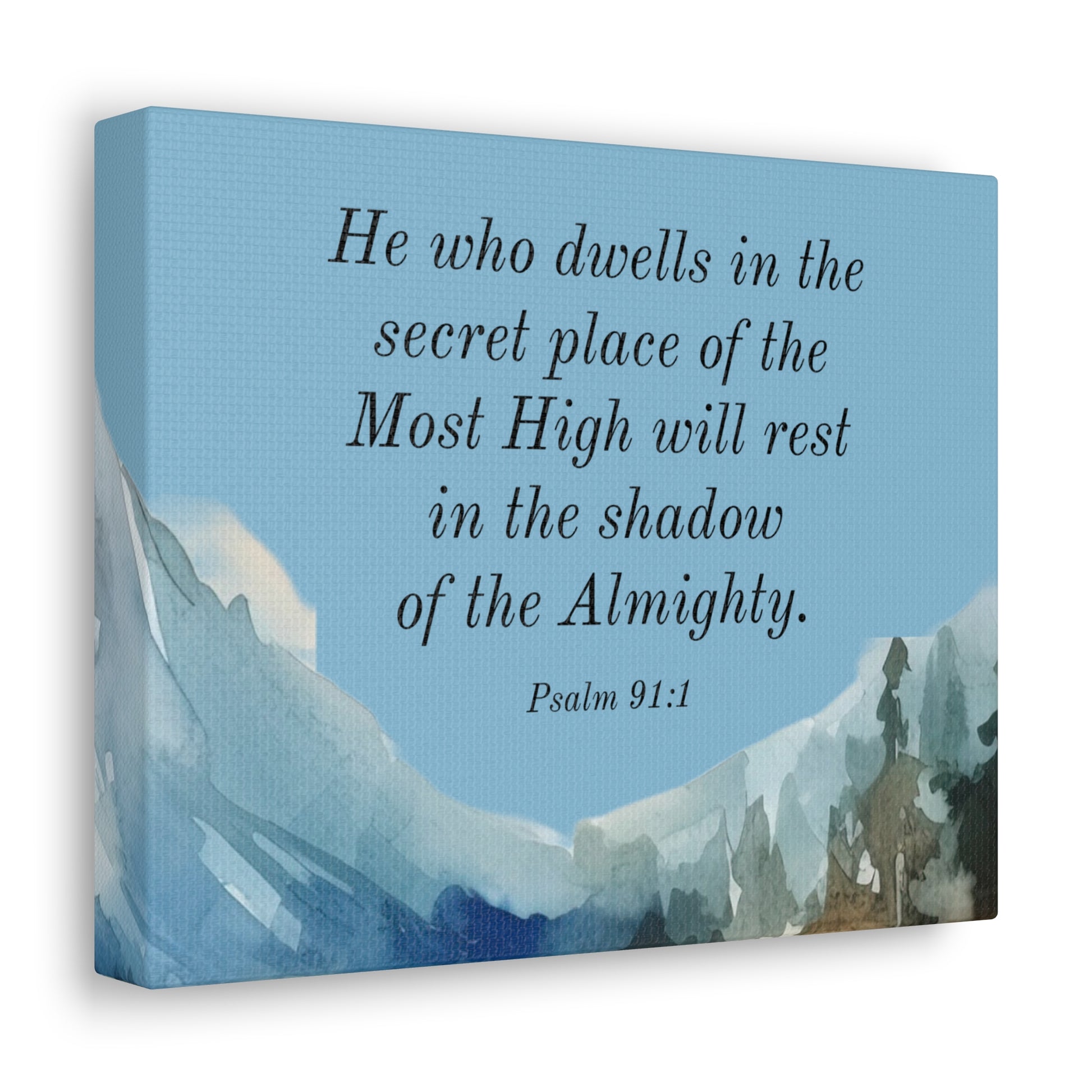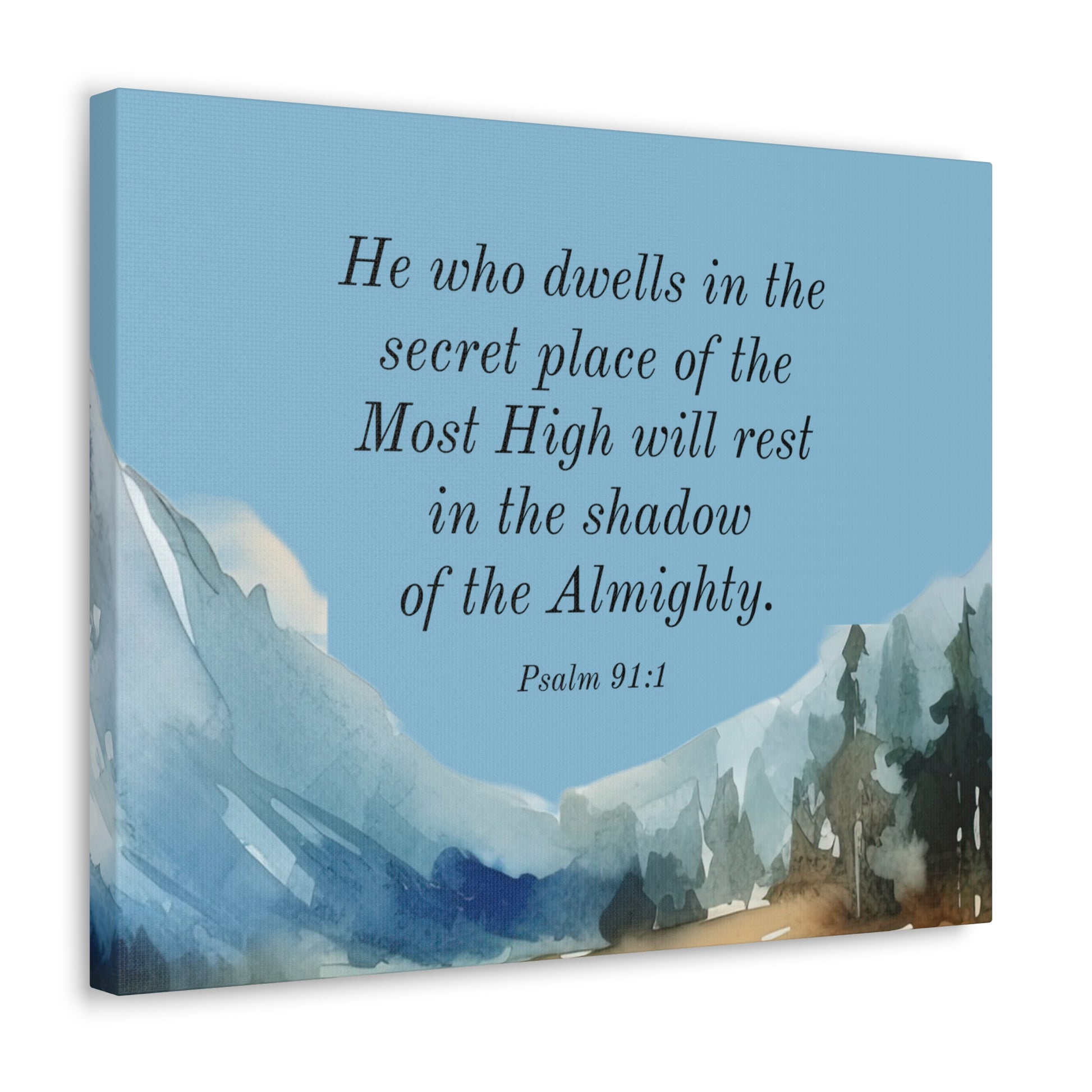 Psalm 91:1 promises that He who dwells in the secret place of the Most High will rest in the shadow of the Almighty. Uplift any room's decor with art that's printed on top-quality canvas gallery wraps. Each wrap is made with finely textured, artist-grade cotton substrate which helps reproduce your image in outstanding clarity and detail. Available in multiple sizes, these closed back canvases are built with a patented, solid support face and are excellent for indoor use.