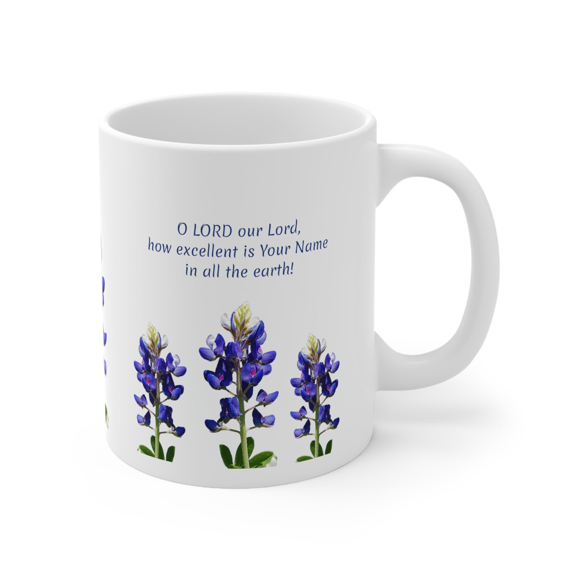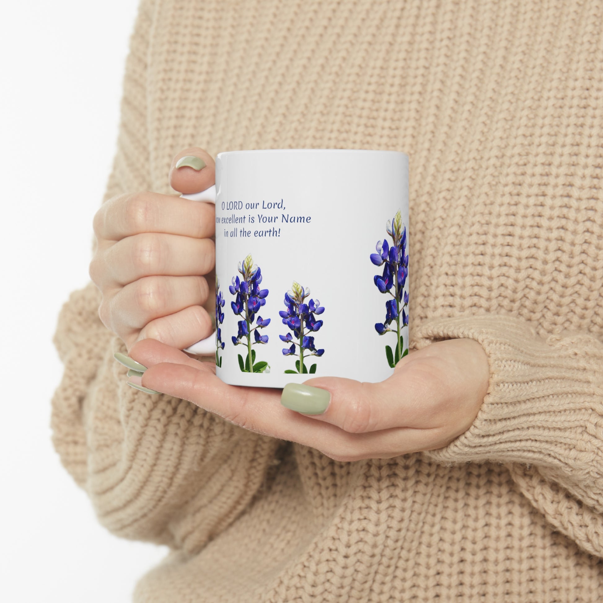 Ceramic Mug - O Lord, our Lord, How Excellent Is Your Name in All the Earth - bluebonnets