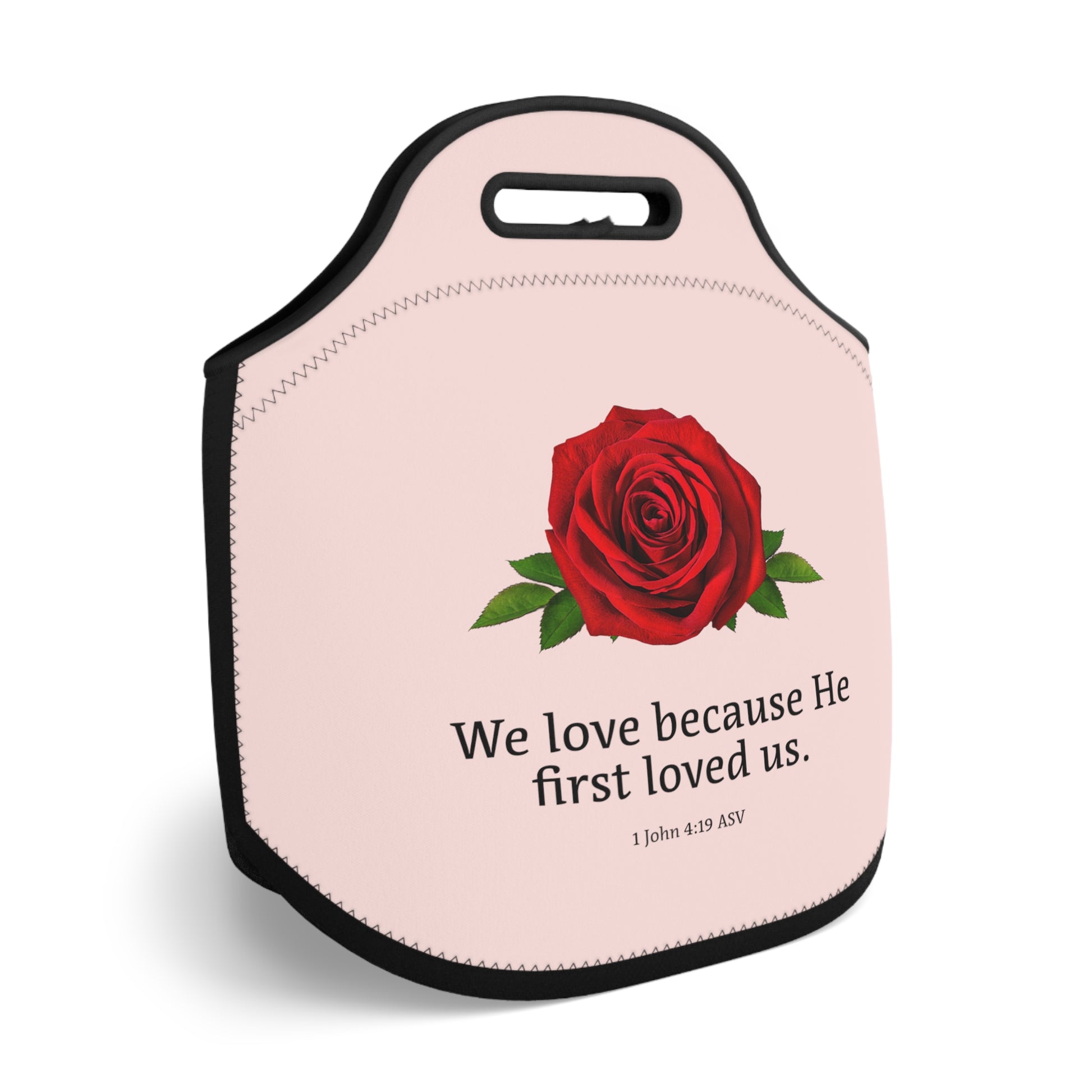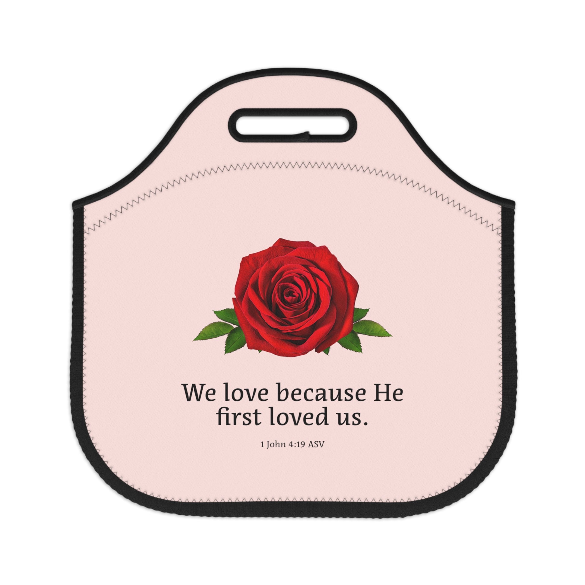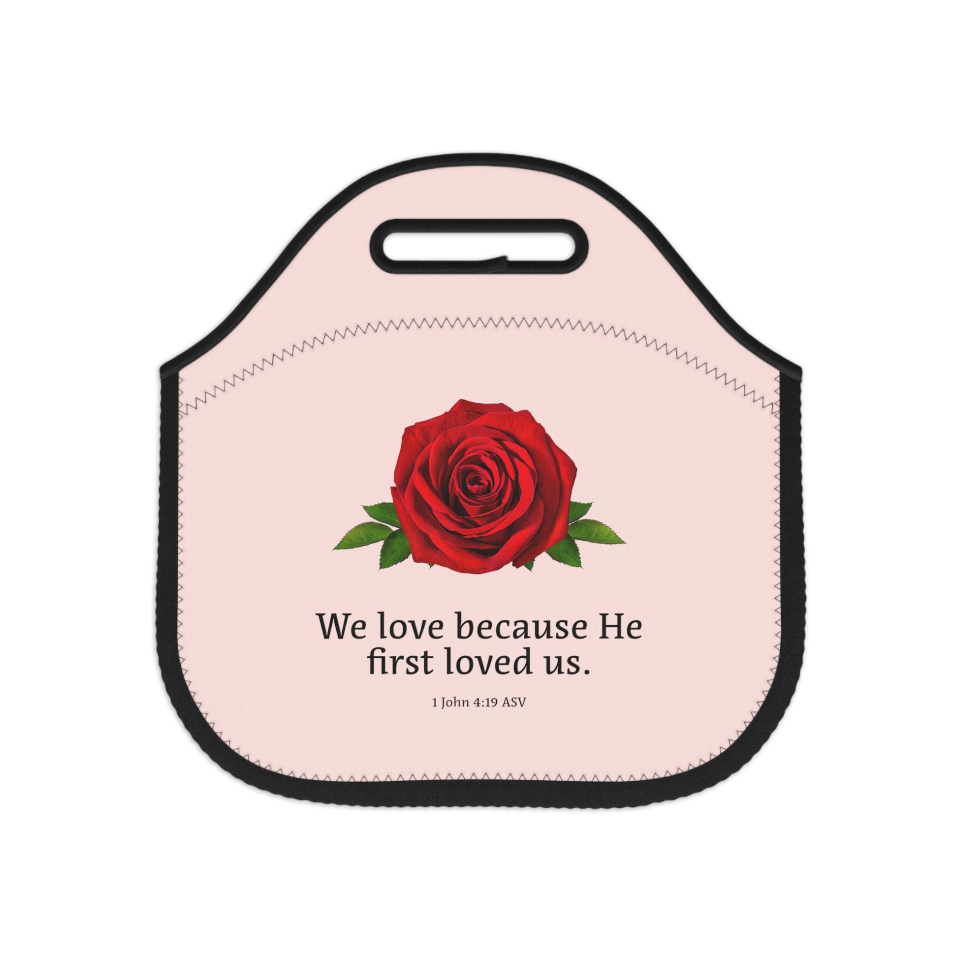 Neoprene Lunch Bag - We Love Because He First Loved Us